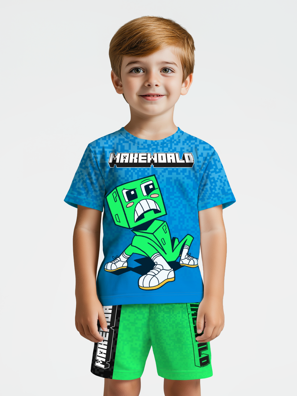 Стильная пижама c ярким тематическим принтом из хлопка. Комплект состоит из футболки прямого силуэта и шорт. Комплект подходит для сна, домашнего времяпровождения или прогулок. Футболку от пижамы можно использовать как самостоятельную деталь гардероба. Мягкий хлопок обладает приятными тактильными свойствами, а яркий принт не выцветает и совершенно не ощутим. Все используемые краски для печати принта безопасные и экологичные.