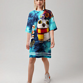 Платье-футболка из хлопка с оригинальным принтом. Платье прямого силуэта с короткими рукавами. Оригинальная и современная модель. Мягкий хлопок обладает приятными тактильными свойствами, а яркий принт не выцветает и совершенно не ощутим. Благодаря уникальной технологии печати по ткани - яркий принт не потрескается и не полиняет! Все используемые краски для печати принта безопасные и экологичные и сохраняют воздухопроницаемость ткани