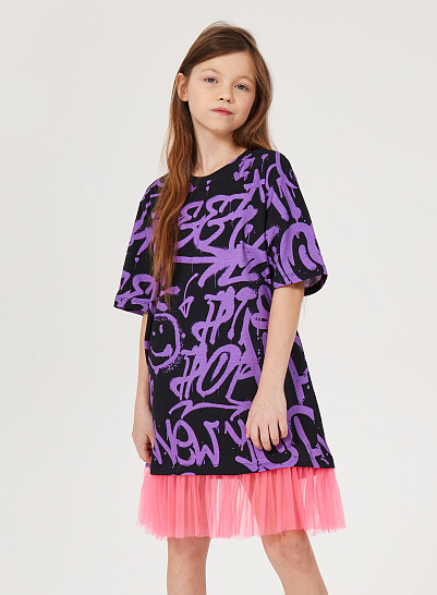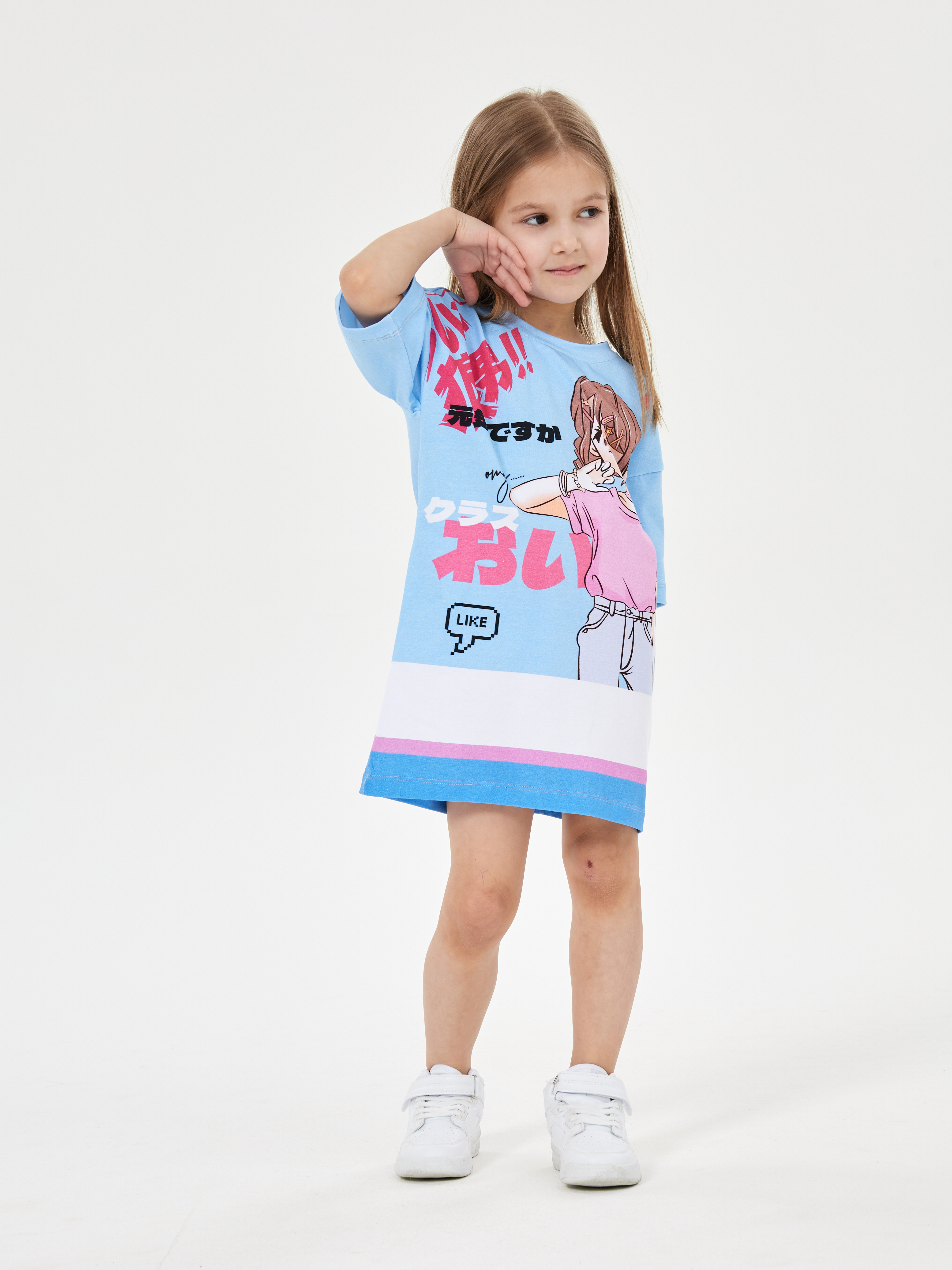Платье-футболка из хлопка с оригинальным принтом. Платье прямого силуэта с короткими рукавами. Оригинальная и современная модель. Мягкий хлопок обладает приятными тактильными свойствами, а яркий принт не выцветает и совершенно не ощутим. Благодаря уникальной технологии печати по ткани - яркий принт не потрескается и не полиняет! Все используемые краски для печати принта безопасные и экологичные и сохраняют воздухопроницаемость ткани