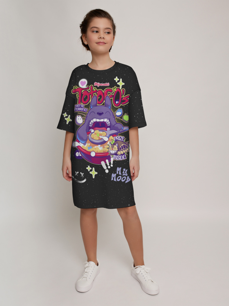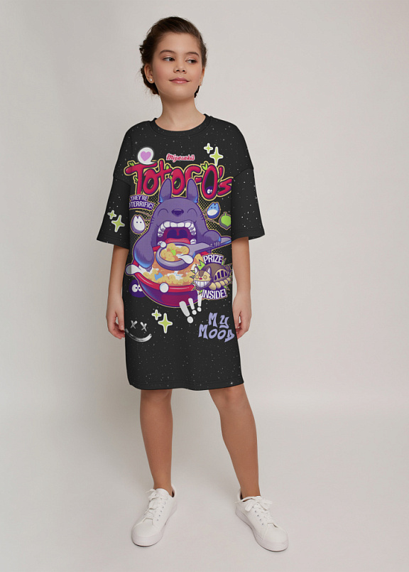 Платье-футболка из хлопка с оригинальным принтом. Платье прямого силуэта с короткими рукавами. Оригинальная и современная модель. Мягкий хлопок обладает приятными тактильными свойствами, а яркий принт не выцветает и совершенно не ощутим. Благодаря уникальной технологии печати по ткани - яркий принт не потрескается и не полиняет! Все используемые краски для печати принта безопасные и экологичные и сохраняют воздухопроницаемость ткани