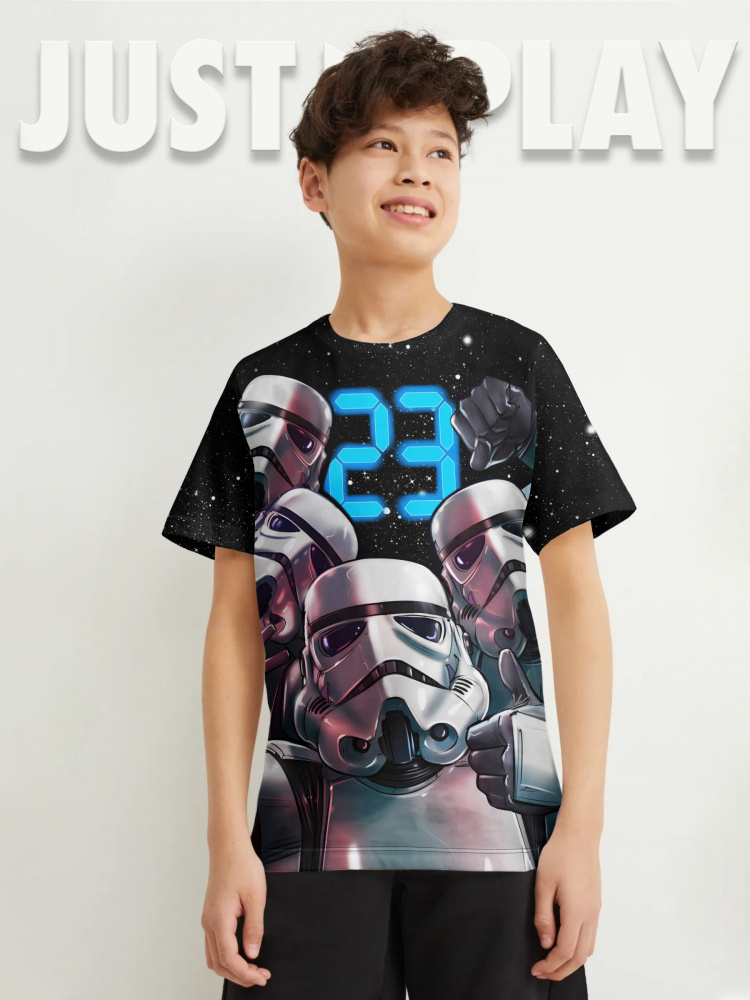 Яркая футболка из хлопка с тематическим принтом. Модель прямого силуэта. Футболка идеально подойдет для повседневной носки. Мягкий хлопок обладает приятными тактильными свойствами, а яркий принт не выцветает и совершенно не ощутим. Благодаря уникальной технологии печати по ткани - яркий принт не потрескается и не полиняет! Все используемые краски для печати принта безопасные и экологичные и сохраняют воздухопроницаемость ткани.