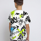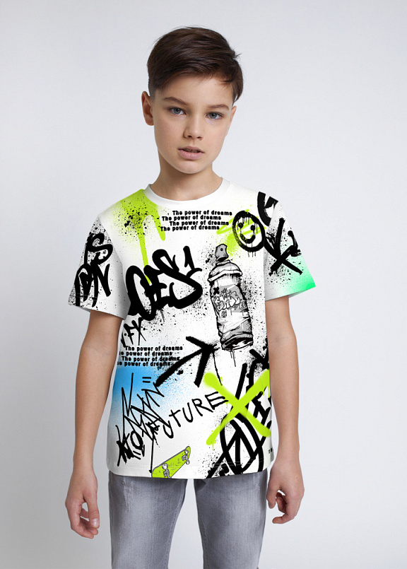 Яркая футболка из хлопка с оригинальным принтом. Модель прямого силуэта. Футболка идеально подойдет для повседневной носки. Мягкий хлопок обладает приятными тактильными свойствами, а яркий принт не выцветает и совершенно не ощутим. Благодаря уникальной технологии печати по ткани - яркий принт не потрескается и не полиняет! Все используемые краски для печати принта безопасные и экологичные и сохраняют воздухопроницаемость ткани.