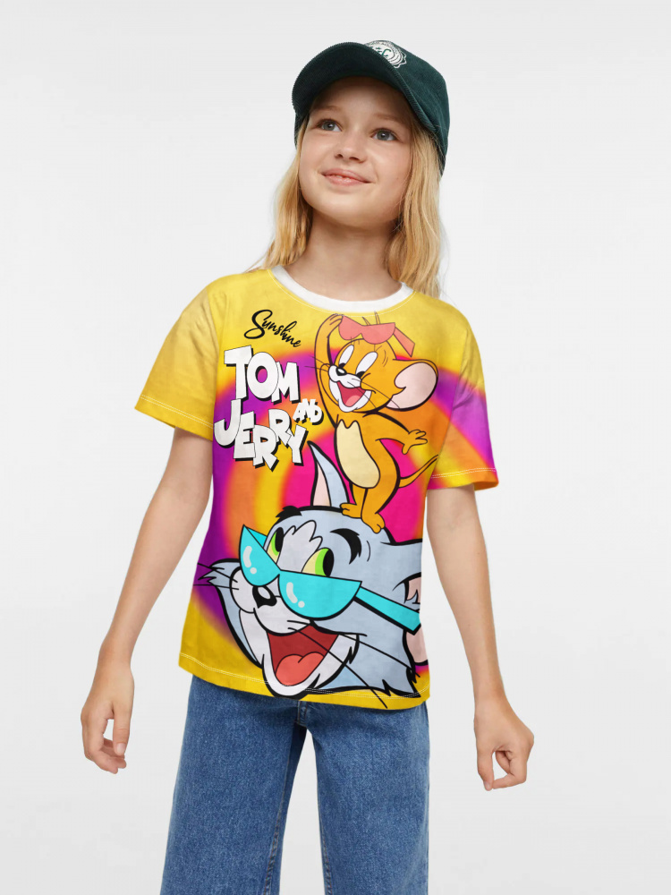 Яркая футболка из хлопка с тематическим принтом. Модель прямого силуэта. Футболка идеально подойдет для повседневной носки. Мягкий хлопок обладает приятными тактильными свойствами, а яркий принт не выцветает и совершенно не ощутим. Благодаря уникальной технологии печати по ткани - яркий принт не потрескается и не полиняет!Все используемые краски для печати принта безопасные и экологичные и сохраняют воздухопроницаемость ткани.