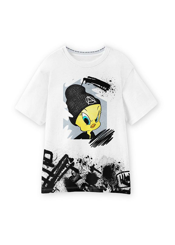 Яркая футболка из хлопка с тематическим принтом. Модель прямого силуэта. Футболка идеально подойдет для повседневной носки. Мягкий хлопок обладает приятными тактильными свойствами, а яркий принт не выцветает и совершенно не ощутим. Благодаря уникальной технологии печати по ткани - яркий принт не потрескается и не полиняет! Все используемые краски для печати принта безопасные и экологичные и сохраняют воздухопроницаемость ткани.