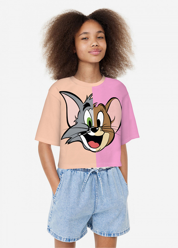 Яркая футболка из хлопка с оригинальным принтом. Модель свободного укороченного силуэта. Футболка идеально подойдет для повседневной носки. Мягкий хлопок обладает приятными тактильными свойствами, а яркий принт не выцветает и совершенно не ощутим. Благодаря уникальной технологии печати по ткани - яркий принт не потрескается и не полиняет! Все используемые краски для печати принта безопасные и экологичные и сохраняют воздухопроницаемость ткани.