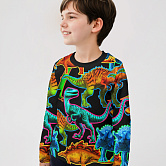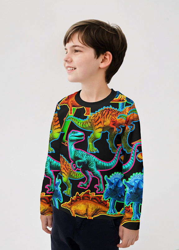 Лонгслив для мальчика из хлопка с оригинальным принтом. Модель прямого, полуприлегающего силуэта с длинными рукавами. Базовая деталь гардероба. Мягкий хлопок обладает приятными тактильными свойствами, а принт не выцветает и совершенно не ощутим. Благодаря уникальной технологии печати по ткани - яркий принт не потрескается и не полиняет! Все используемые краски для печати принта безопасные и экологичные и сохраняют воздухопроницаемость ткани.