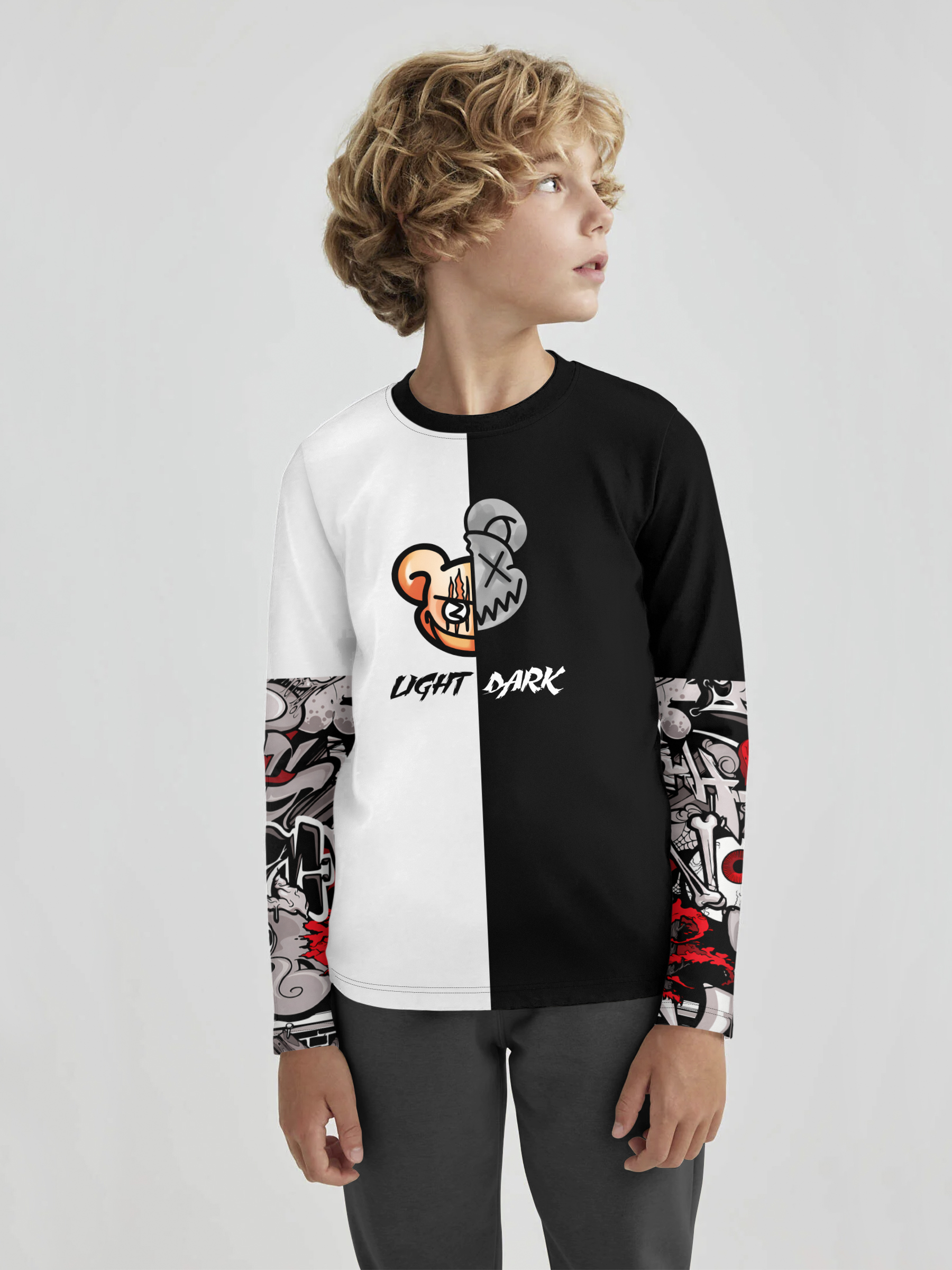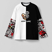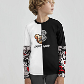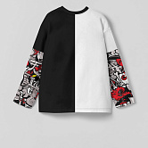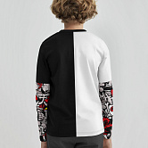 Лонгслив для девочки из хлопка с оригинальным принтом. Модель полуприлегающего, свободного силуэта с длинными рукавами. Базовая деталь гардероба. Мягкий хлопок обладает приятными тактильными свойствами, а принт не выцветает и совершенно не ощутим. Благодаря уникальной технологии печати по ткани - яркий принт не потрескается и не полиняет! Все используемые краски для печати принта безопасные и экологичные и сохраняют воздухопроницаемость ткани.