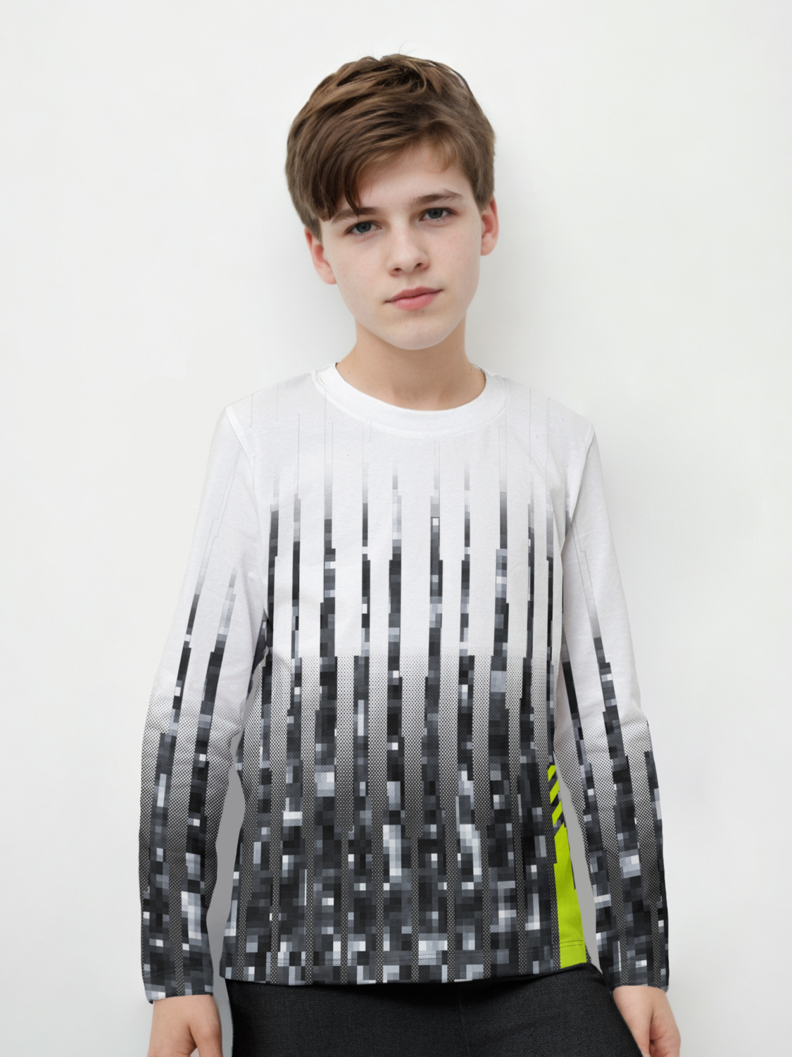 Лонгслив для девочки из хлопка с оригинальным принтом. Модель полуприлегающего, свободного силуэта с длинными рукавами. Базовая деталь гардероба. Мягкий хлопок обладает приятными тактильными свойствами, а принт не выцветает и совершенно не ощутим. Благодаря уникальной технологии печати по ткани - яркий принт не потрескается и не полиняет! Все используемые краски для печати принта безопасные и экологичные и сохраняют воздухопроницаемость ткани.