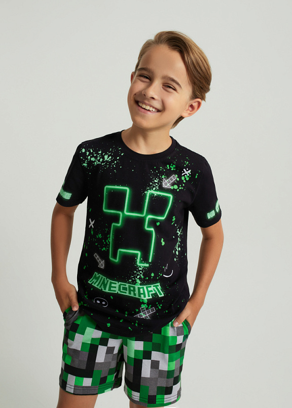 Стильная пижама c ярким тематическим принтом из хлопка. Комплект состоит из футболки прямого силуэта и шорт. Комплект подходит для сна, домашнего времяпровождения или прогулок. Футболку от пижамы можно использовать как самостоятельную деталь гардероба. Мягкий хлопок обладает приятными тактильными свойствами, а яркий принт не выцветает и совершенно не ощутим. Все используемые краски для печати принта безопасные и экологичные.