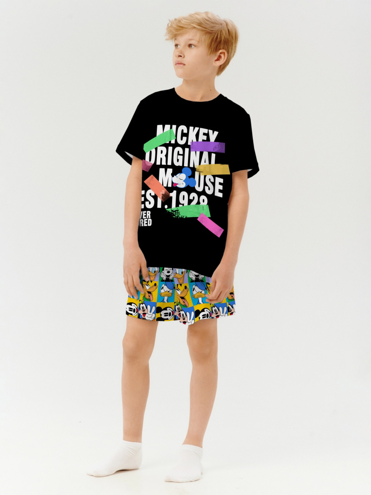 Стильная пижама c ярким тематическим принтом из хлопка. Комплект состоит из футболки прямого силуэта и шорт. Комплект подходит для сна, домашнего времяпровождения или прогулок. Футболку от пижамы можно использовать как самостоятельную деталь гардероба. Мягкий хлопок обладает приятными тактильными свойствами, а яркий принт не выцветает и совершенно не ощутим. Все используемые краски для печати принта безопасные и экологичные.