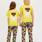 Стильная пижама c ярким тематическим принтом из хлопка. Комплект состоит из футболки прямого силуэта и брючек с манжетой. Пижама идеальна для сна или домашнего времяпровождения. Футболку от пижамы можно использовать как самостоятельную деталь гардероба. Мягкий хлопок с бархатистым эффектом обладает приятными тактильными свойствами, а яркий принт не ощущается на ощупь. Все используемые краски для печати принта безопасные и экологичные.
