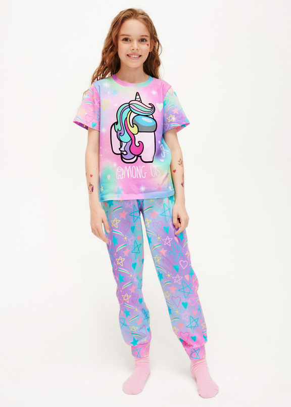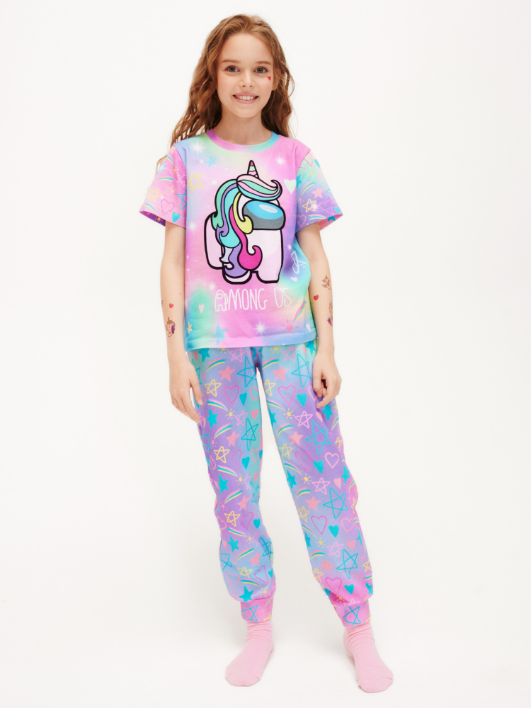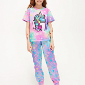 Стильная пижама c ярким тематическим принтом из хлопка. Комплект состоит из футболки прямого силуэта и брючек с манжетой. Пижама идеальна для сна или домашнего времяпровождения. Футболку от пижамы можно использовать как самостоятельную деталь гардероба. Мягкий хлопок с бархатистым эффектом обладает приятными тактильными свойствами, а яркий принт не ощущается на ощупь. Все используемые краски для печати принта безопасные и экологичные.