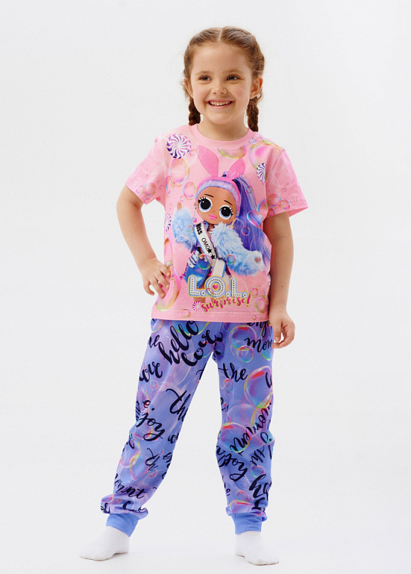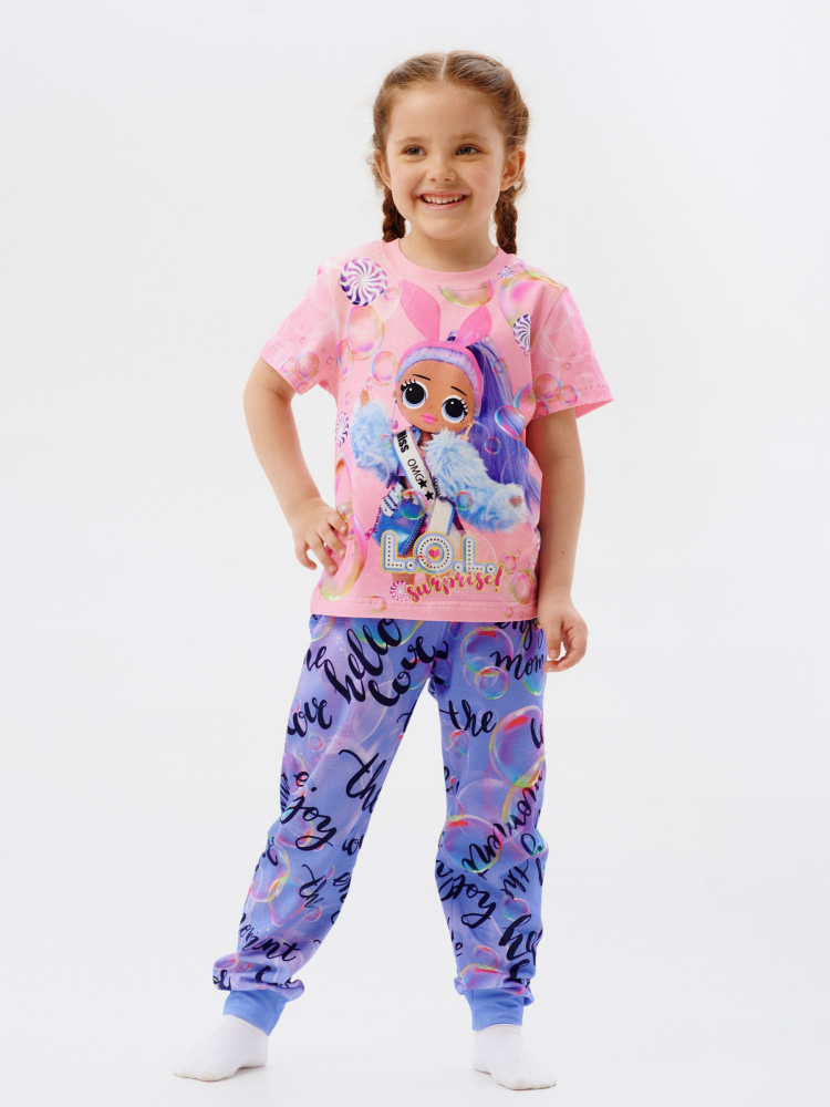 Стильная пижама c ярким тематическим принтом из хлопка. Комплект состоит из футболки прямого силуэта и брючек с манжетой. Пижама идеальна для сна или домашнего времяпровождения. Футболку от пижамы можно использовать как самостоятельную деталь гардероба. Мягкий хлопок с бархатистым эффектом обладает приятными тактильными свойствами, а яркий принт не ощущается на ощупь. Все используемые краски для печати принта безопасные и экологичные.