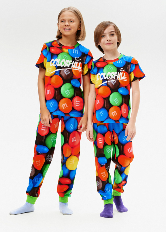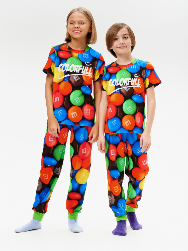 Самая лучшая и уютная детская пижама VIS-A-VIS для мальчиков и девочек с ярким рисунком (пицца, M&M, авокадо, котик, пицца, динозавры) из натурального хлопка с небольшим добавлением спандекса для сохранения формы изделия. Домашний костюм изготовлен по всем стандартам качества для детской одежды: материал не вызывает аллергии, а тело дышит. Пижамка не сковывает движения, отлично подойдет для активных игр и сна. Комплект одежды состоит из просторны