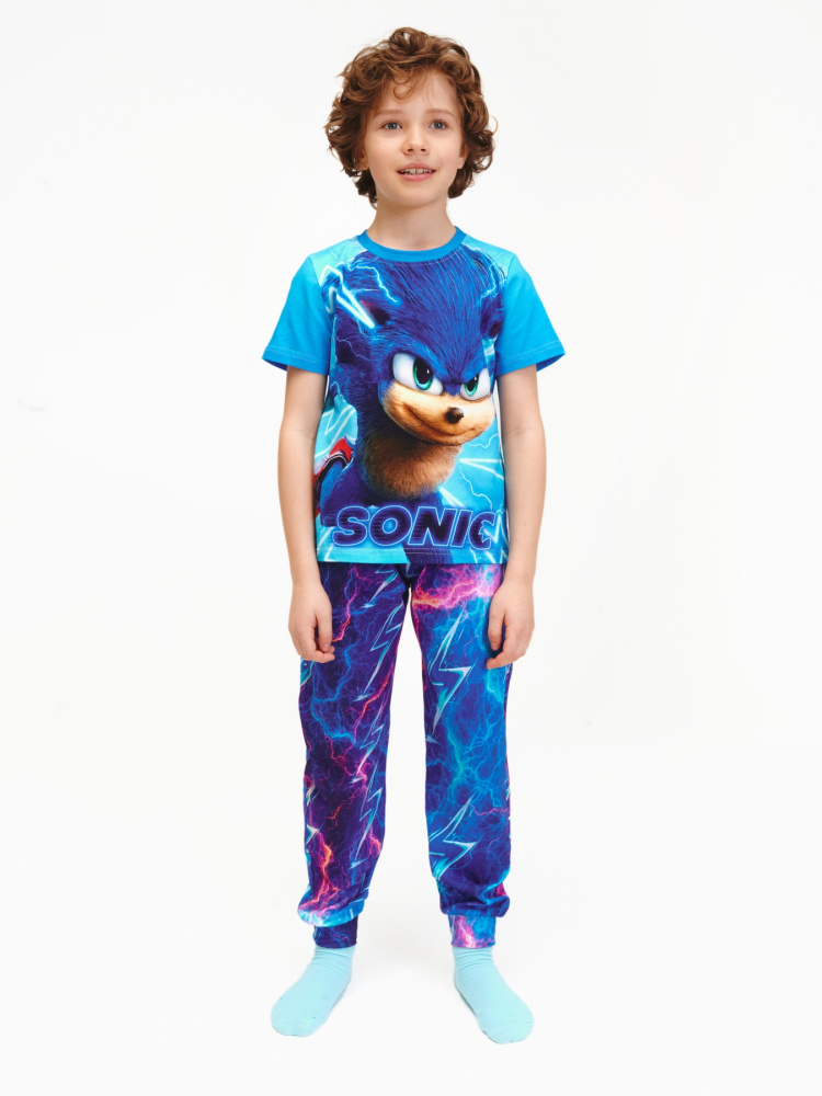 Стильная пижама c ярким тематическим принтом из хлопка. Комплект состоит из футболки прямого силуэта и брючек с манжетой. Пижама идеальна для сна или домашнего времяпровождения. Футболку от пижамы можно использовать как самостоятельную деталь гардероба. Мягкий хлопок с бархатистым эффектом обладает приятными тактильными свойствами, а яркий принт не ощущается на ощупь. Все используемые краски для печати принта безопасные и экологичные.
