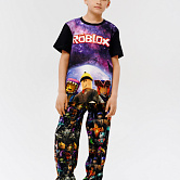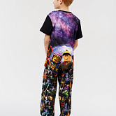 Стильная пижама c ярким тематическим принтом из хлопка. Комплект состоит из футболки прямого силуэта и брючек с манжетой. Пижама идеальна для сна или домашнего времяпровождения. Футболку от пижамы можно использовать как самостоятельную деталь гардероба. Мягкий хлопок с бархатистым эффектом обладает приятными тактильными свойствами, а яркий принт не ощущается на ощупь. Все используемые краски для печати принта безопасные и экологичные.