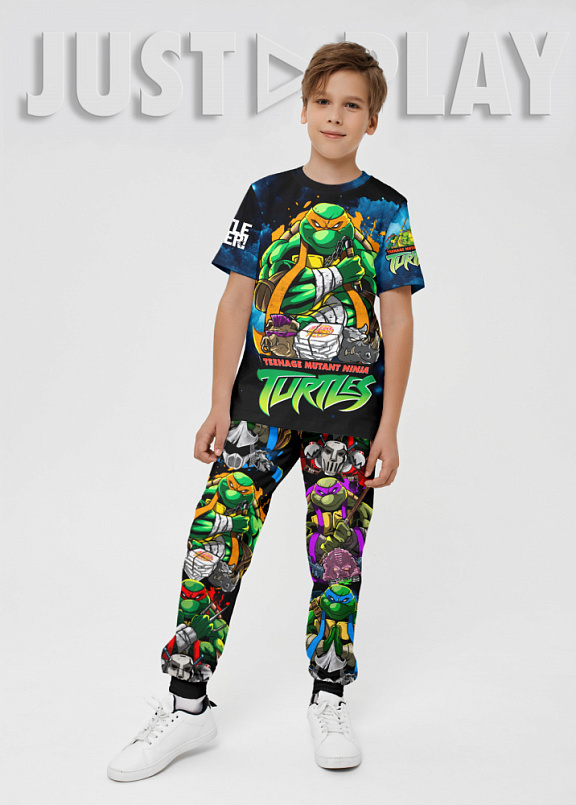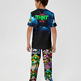 Стильная пижама c ярким тематическим принтом из хлопка. Комплект состоит из футболки прямого силуэта и брюк с манжетой. Пижама идеальна для сна, отдыха или прогулок. Футболку от пижамы можно использовать как самостоятельную деталь гардероба. Мягкий хлопок с бархатистым эффектом обладает приятными тактильными свойствами, а яркий принт не ощущается на ощупь. Все используемые краски для печати принта безопасные и экологичные.