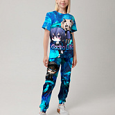 Стильная пижама c ярким тематическим принтом из хлопка. Комплект состоит из футболки прямого силуэта и брюк с манжетой. Пижама идеальна для сна, отдыха или прогулок. Футболку от пижамы можно использовать как самостоятельную деталь гардероба. Мягкий хлопок с бархатистым эффектом обладает приятными тактильными свойствами, а яркий принт не ощущается на ощупь. Все используемые краски для печати принта безопасные и экологичные.