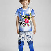 Стильная пижама c ярким тематическим принтом из хлопка. Комплект состоит из футболки прямого силуэта и брюк с манжетой. Пижама идеальна для сна, отдыха или прогулок. Футболку от пижамы можно использовать как самостоятельную деталь гардероба. Мягкий хлопок с бархатистым эффектом обладает приятными тактильными свойствами, а яркий принт не ощущается на ощупь. Все используемые краски для печати принта безопасные и экологичные.