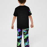 Стильная пижама c ярким тематическим принтом из хлопка. Комплект состоит из футболки прямого силуэта и брюк с манжетой. Пижама идеальна для сна, отдыха или прогулок. Футболку от пижамы можно использовать как самостоятельную деталь гардероба. Мягкий хлопок с бархатистым эффектом обладает приятными тактильными свойствами, а яркий принт не ощущается на ощупь. Все используемые краски для печати принта безопасные и экологичные.