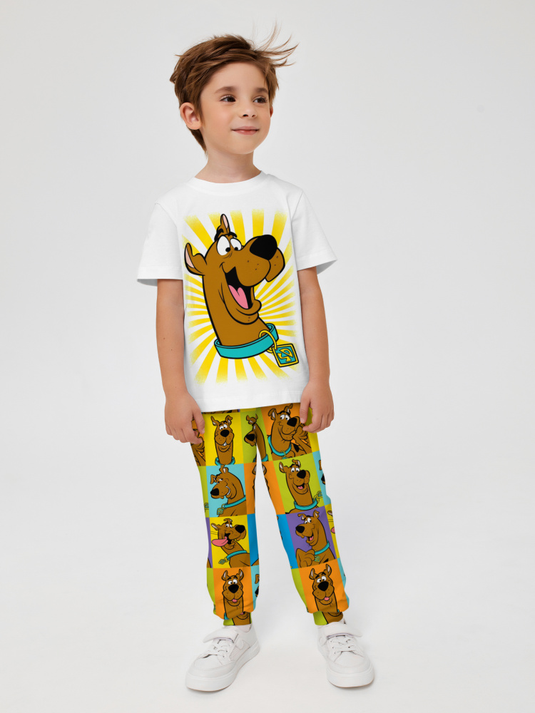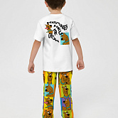 Стильная пижама c ярким тематическим принтом из хлопка. Комплект состоит из футболки прямого силуэта и брюк с манжетой. Пижама идеальна для сна, отдыха или прогулок. Футболку от пижамы можно использовать как самостоятельную деталь гардероба. Мягкий хлопок с бархатистым эффектом обладает приятными тактильными свойствами, а яркий принт не ощущается на ощупь. Все используемые краски для печати принта безопасные и экологичные.