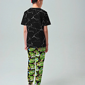 Стильная пижама c ярким тематическим принтом из хлопка. Комплект состоит из футболки прямого силуэта и брюк с манжетой. Пижама идеальна для сна, отдыха или прогулок. Футболку от пижамы можно использовать как самостоятельную деталь гардероба. Мягкий хлопок с бархатистым эффектом обладает приятными тактильными свойствами, а яркий принт не ощущается на ощупь. Все используемые краски для печати принта безопасные и экологичные.