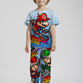 Стильная пижама c ярким тематическим принтом из хлопка. Комплект состоит из футболки прямого силуэта и брюк с манжетой. Пижама идеальна для сна, отдыха или прогулок. Футболку от пижамы можно использовать как самостоятельную деталь гардероба. Мягкий хлопок с бархатистым эффектом обладает приятными тактильными свойствами, а яркий принт не ощущается на ощупь. Все используемые краски для печати принта безопасные и экологичные.