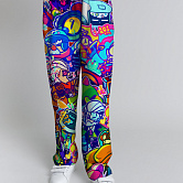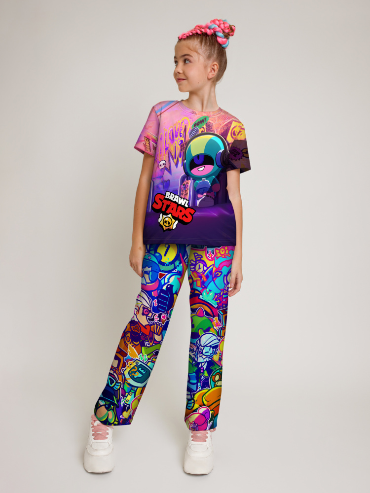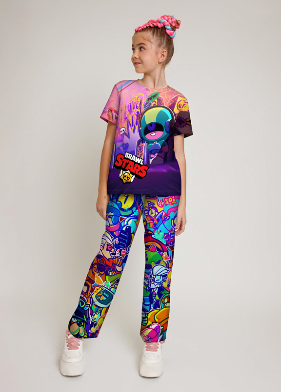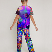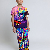 Стильная пижама c ярким тематическим принтом из хлопка. Комплект состоит из футболки прямого силуэта и брюк с манжетой. Пижама идеальна для сна, отдыха или прогулок. Футболку от пижамы можно использовать как самостоятельную деталь гардероба. Мягкий хлопок с бархатистым эффектом обладает приятными тактильными свойствами, а яркий принт не ощущается на ощупь. Все используемые краски для печати принта безопасные и экологичные.