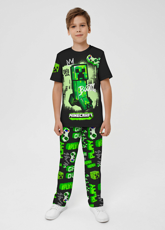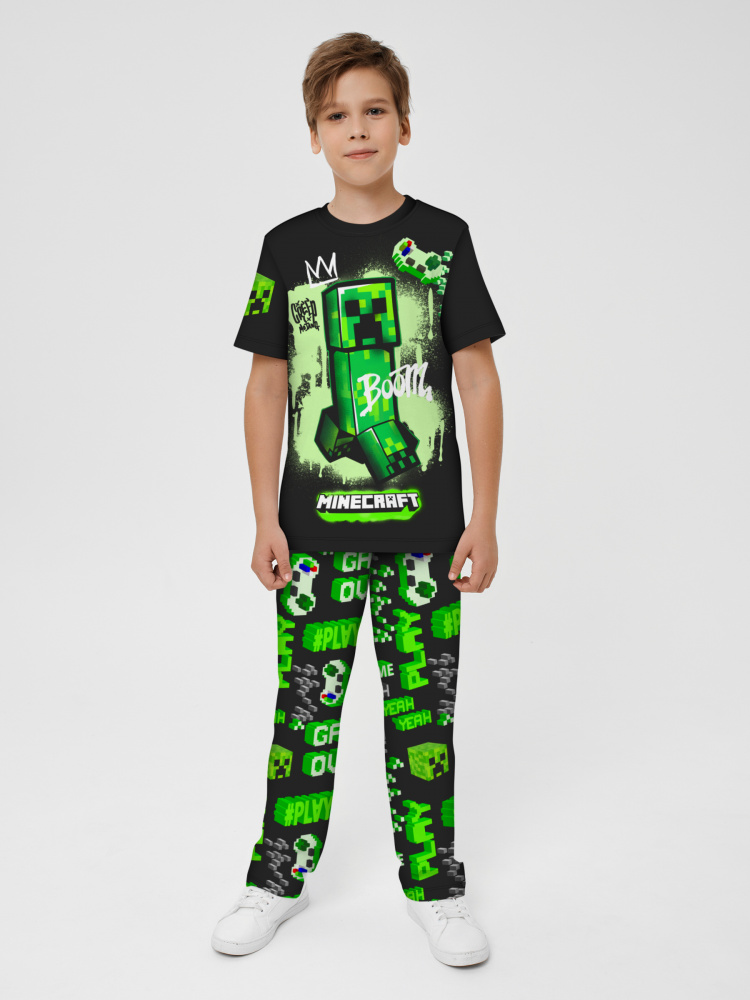 Стильная пижама c ярким тематическим принтом из хлопка. Комплект состоит из футболки прямого силуэта и брюк с манжетой. Пижама идеальна для сна, отдыха или прогулок. Футболку от пижамы можно использовать как самостоятельную деталь гардероба. Мягкий хлопок с бархатистым эффектом обладает приятными тактильными свойствами, а яркий принт не ощущается на ощупь. Все используемые краски для печати принта безопасные и экологичные.