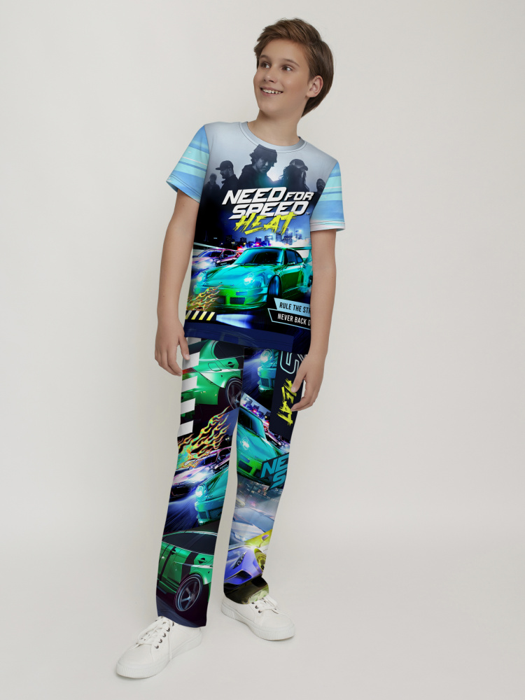 Стильная пижама c ярким тематическим принтом из хлопка. Комплект состоит из футболки прямого силуэта и брюк с манжетой. Пижама идеальна для сна, отдыха или прогулок. Футболку от пижамы можно использовать как самостоятельную деталь гардероба. Мягкий хлопок с бархатистым эффектом обладает приятными тактильными свойствами, а яркий принт не ощущается на ощупь. Все используемые краски для печати принта безопасные и экологичные.
