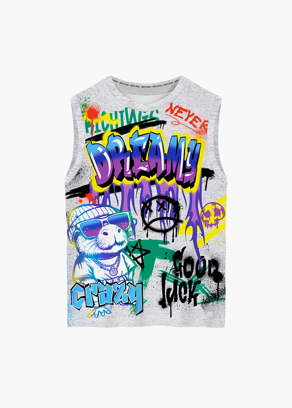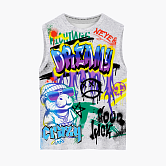 Яркая майка с тематическим принтом из хлопка. Майка идеально подойдет для повседневной носки. Мягкий хлопок с бархатистым эффектом обладает приятными тактильными свойствами, а яркий принт не ощущается на ощупь. Благодаря уникальной технологии печати по ткани - яркий принт не потрескается и не полиняет! Все используемые краски для печати принта безопасные и экологичные и позволяют ткани дышать.