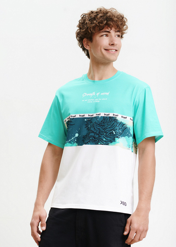 Стильная футболка из хлопка c оригинальным принтом по всей поверхности. Футболка идеально подойдет для повседневной носки. Мягкий хлопок обладает приятными тактильными свойствами, а яркий принт не выцветает и совершенно не ощутим. Все используемые краски для печати принта безопасные и экологичные.