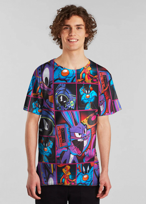 Стильная футболка из хлопка c оригинальным принтом по всей поверхности. Футболка идеально подойдет для повседневной носки. Мягкий хлопок обладает приятными тактильными свойствами, а яркий принт не выцветает и совершенно не ощутим. Все используемые краски для печати принта безопасные и экологичные.