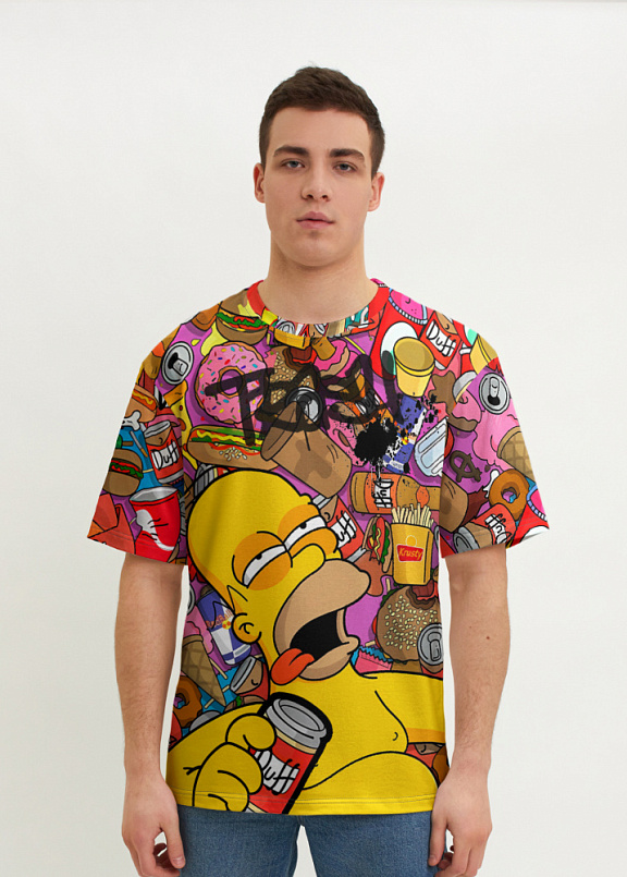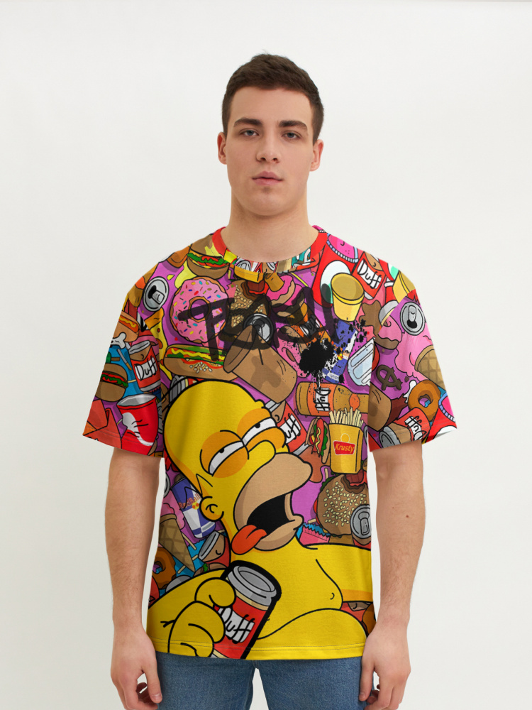 Стильная футболка из хлопка c оригинальным принтом по всей поверхности. Футболка идеально подойдет для повседневной носки. Мягкий хлопок обладает приятными тактильными свойствами, а яркий принт не выцветает и совершенно не ощутим. Все используемые краски для печати принта безопасные и экологичные.
