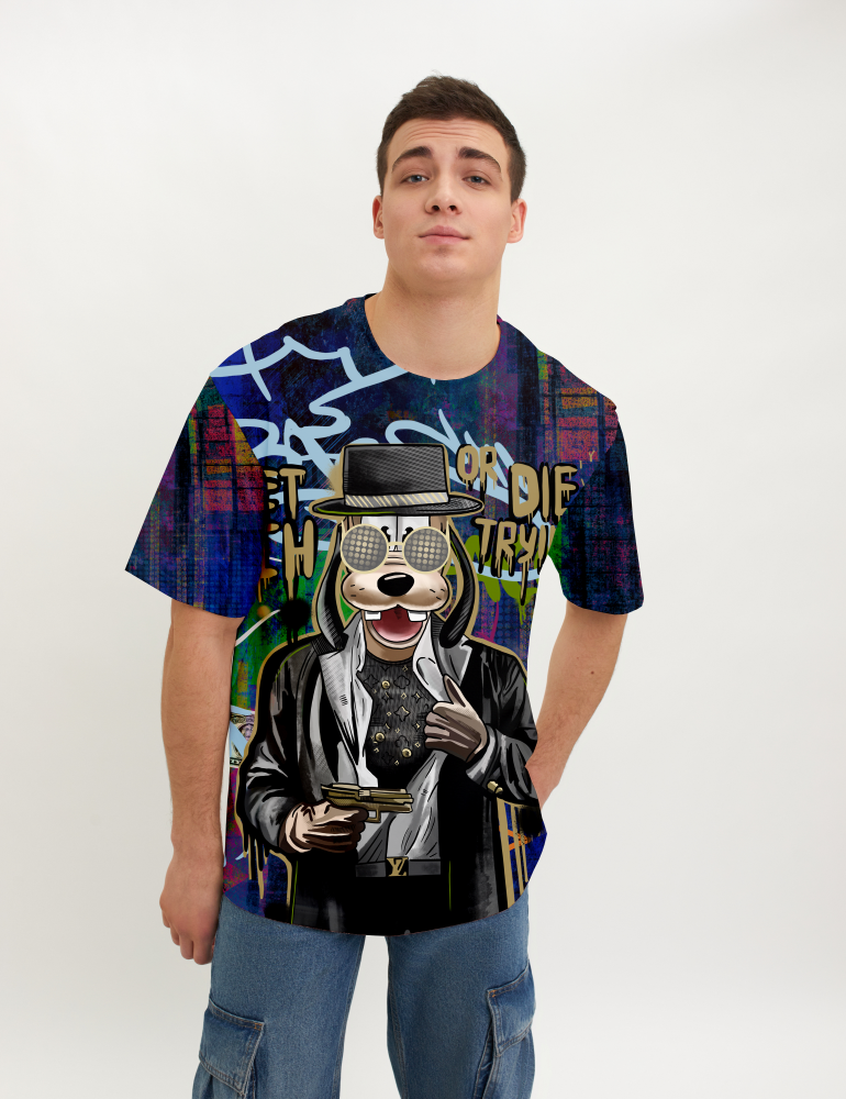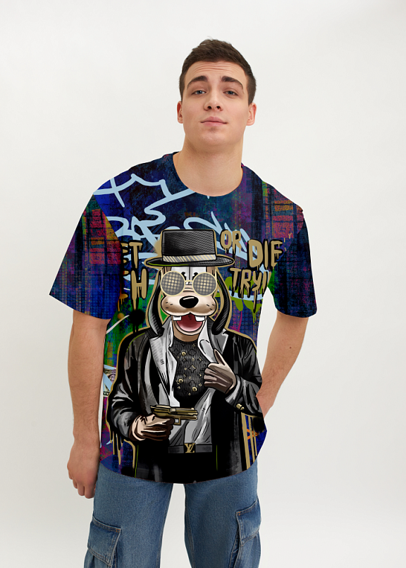 Стильная футболка из хлопка c оригинальным принтом по всей поверхности. Футболка идеально подойдет для повседневной носки. Мягкий хлопок обладает приятными тактильными свойствами, а яркий принт не выцветает и совершенно не ощутим. Все используемые краски для печати принта безопасные и экологичные.