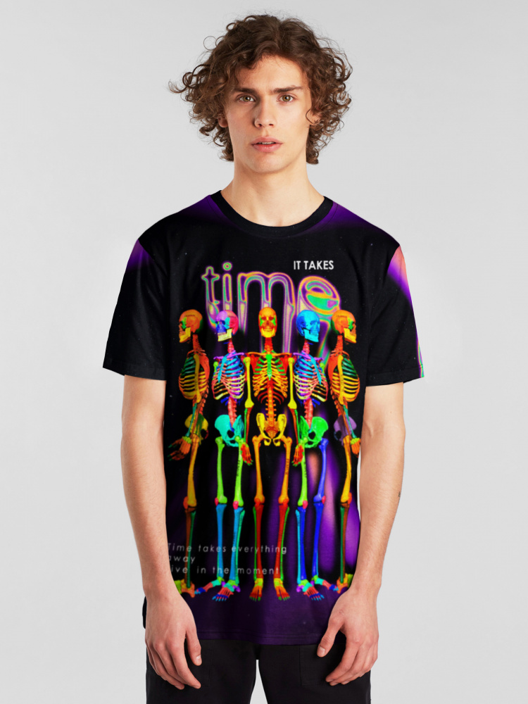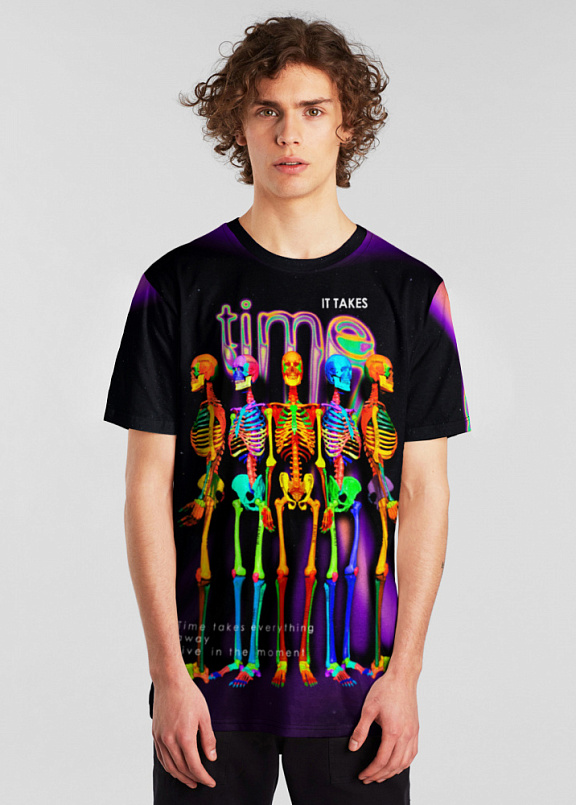 Стильная футболка из хлопка c оригинальным принтом по всей поверхности. Футболка идеально подойдет для повседневной носки. Мягкий хлопок обладает приятными тактильными свойствами, а яркий принт не выцветает и совершенно не ощутим. Все используемые краски для печати принта безопасные и экологичные.