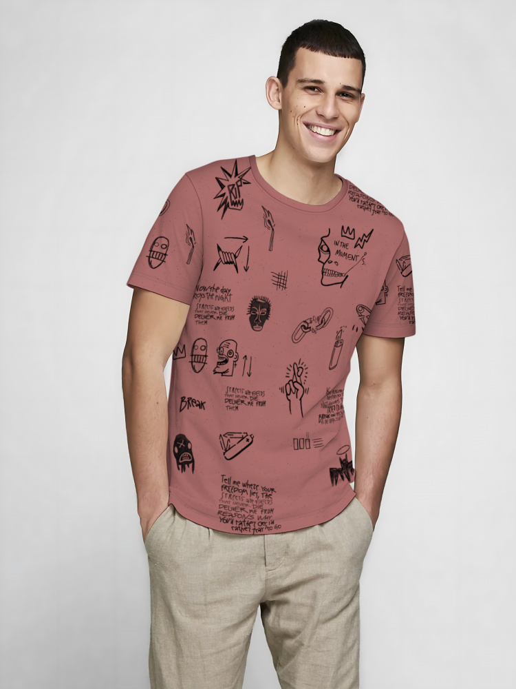 Стильная футболка из хлопка c оригинальным принтом по всей поверхности. Футболка идеально подойдет для повседневной носки. Мягкий хлопок обладает приятными тактильными свойствами, а яркий принт не выцветает и совершенно не ощутим. Все используемые краски для печати принта безопасные и экологичные.