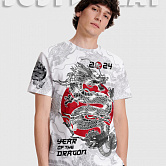 Стильная футболка из хлопка c оригинальным принтом по всей поверхности. Футболка идеально подойдет для повседневной носки. Мягкий хлопок обладает приятными тактильными свойствами, а яркий принт не выцветает и совершенно не ощутим. Все используемые краски для печати принта безопасные и экологичные.