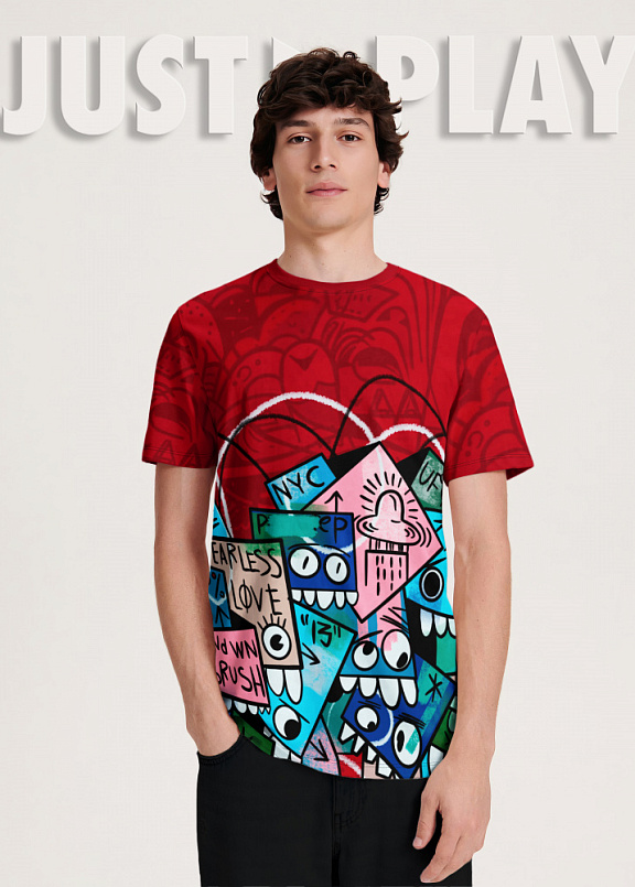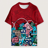 Стильная футболка полуприлегающего силуэта из хлопка c оригинальным принтом по всей поверхности. Футболка идеально подойдет для повседневной носки. Мягкий хлопок обладает приятными тактильными свойствами, а яркий принт не выцветает и совершенно не ощутим. Все используемые краски для печати принта безопасные и экологичные.