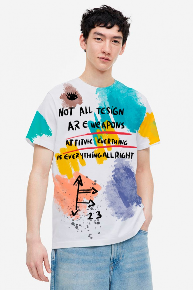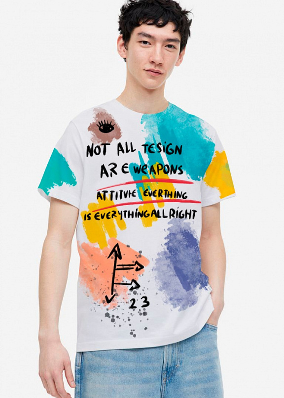 Стильная футболка полуприлегающего силуэта из хлопка c оригинальным принтом по всей поверхности.Футболка идеально подойдет для повседневной носки. Мягкий хлопок обладает приятными тактильными свойствами, а яркий принт не выцветает и совершенно не ощутим. Все используемые краски для печати принта безопасные и экологичные.