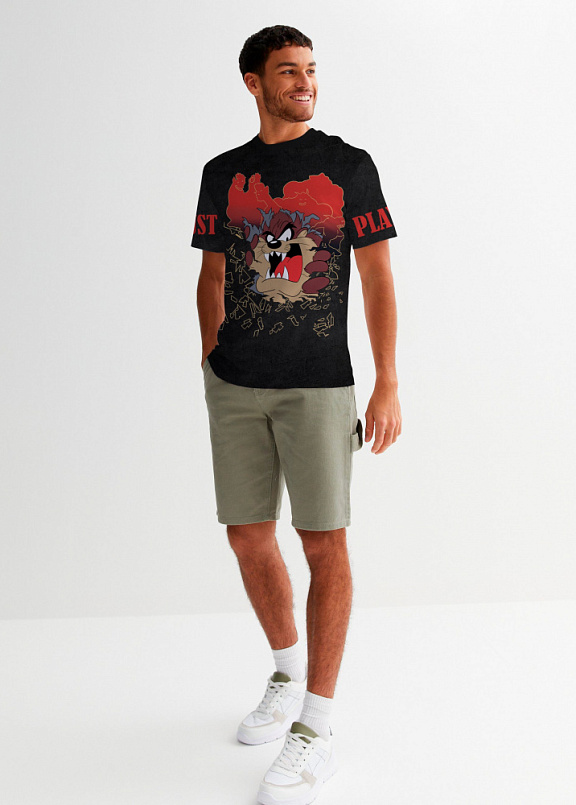 Стильная футболка полуприлегающего силуэта из хлопка c оригинальным принтом по всей поверхности. Футболка идеально подойдет для повседневной носки. Мягкий хлопок обладает приятными тактильными свойствами, а яркий принт не выцветает и совершенно не ощутим. Все используемые краски для печати принта безопасные и экологичные.