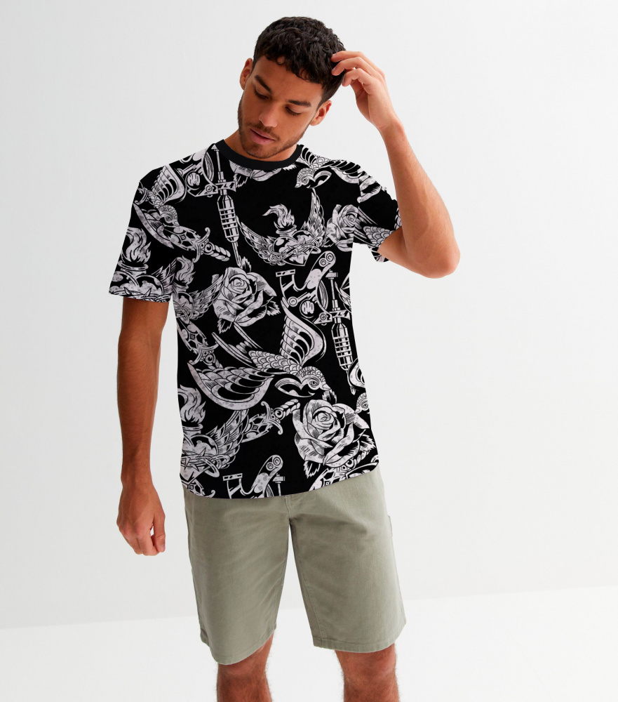 Стильная футболка полуприлегающего силуэта из хлопка c оригинальным принтом по всей поверхности. Футболка идеально подойдет для повседневной носки. Мягкий хлопок обладает приятными тактильными свойствами, а яркий принт не выцветает и совершенно не ощутим. Все используемые краски для печати принта безопасные и экологичные.