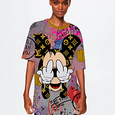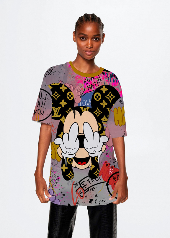 Стильная футболка с ярким тематическим принтом из хлопка. Футболка оверсайз с коротким рукавом. Мягкий хлопок обладает приятными тактильными свойствами, а яркий принт совершенно не ощутим, благодаря уникальной технологии печати по ткани. Все используемые краски для печати принта безопасные и экологичные и позволяют ткани дышать.