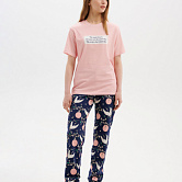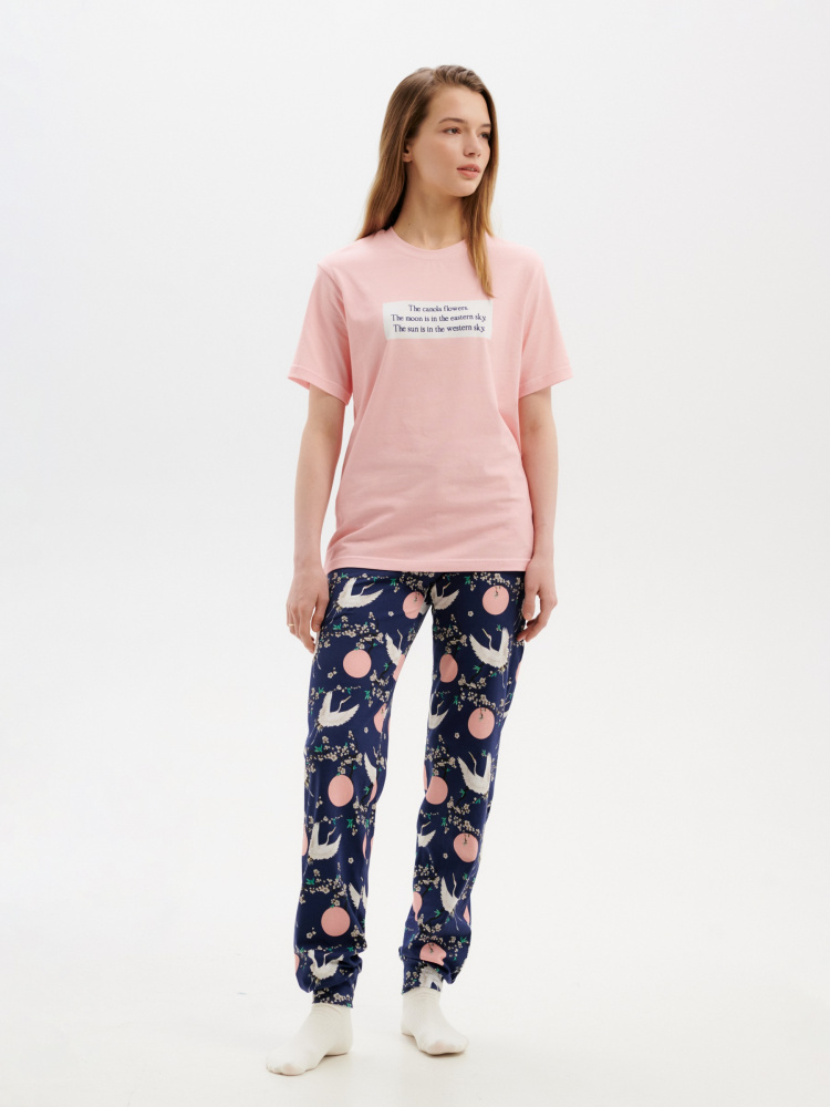 Стильный комплект c ярким тематическим принтом из хлопка. Состоит из футболки прямого силуэта и брюк с манжетой. Комплект можно использовать как домашний костюм или пижаму. Мягкий хлопок обладает приятными тактильными свойствами, а яркий принт совершенно не ощутим, благодаря уникальной технологии печати по ткани. Все используемые краски для печати принта безопасные и экологичные и позволяют ткани дышать.